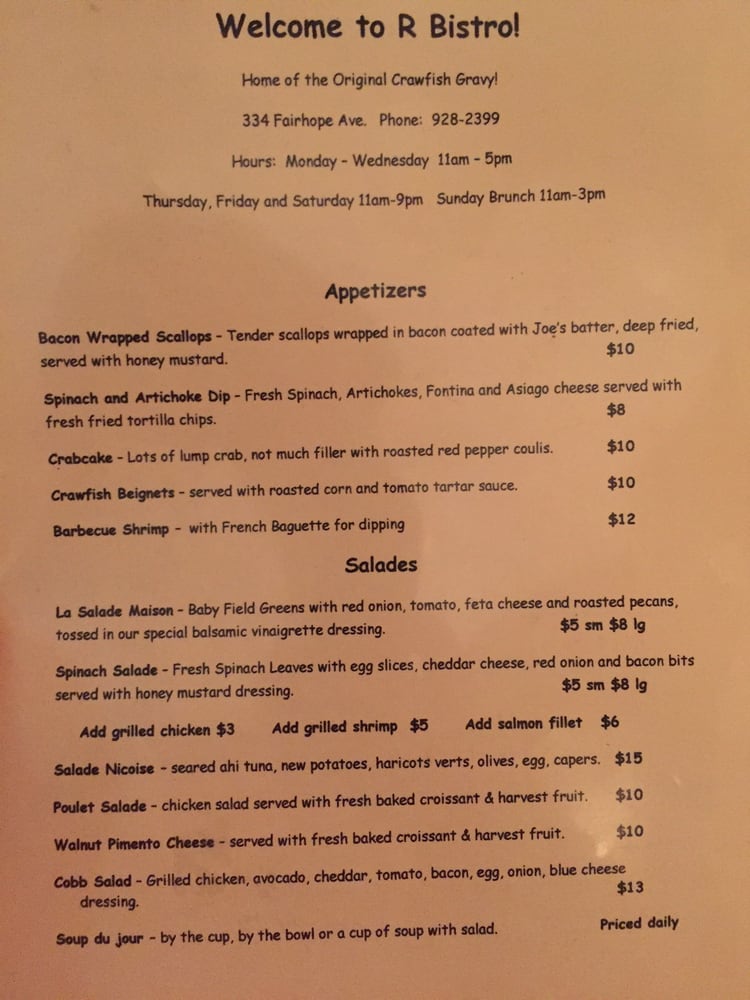 Welcome to R Bistro & Pastry, a gem nestled in downtown Fairhope, Alabama. This charming establishment specializes in Cajun and Creole seafood, offering a menu that delights both locals and visitors alike. The standout dish, as raved by patrons, is their shrimp and grits, drowning in a rich crawfish gravy that’s simply unparalleled.